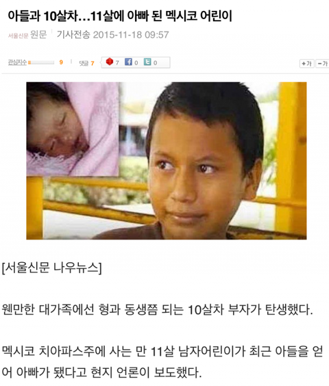 11살에 아빠된 어린이;;;;