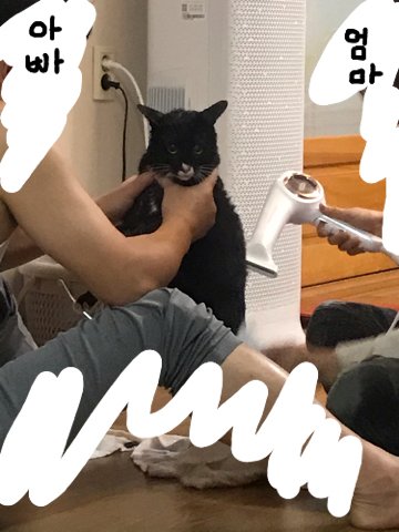 아까 고양이 목욕시키고 말릴때 찍은 짤인데 엄마아빠가 말리는거 도와줘서 나 좀 쉬고있었는데 고양이가 말림 당하면서 나 쳐다보는구 넘 귀여움 ㅜ