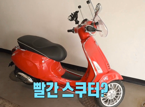 손담비네 주차장 한편에 빨간 스쿠터가 있었고,