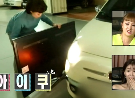 손담비가 TV를 옮기던 VCR 화면을 보던 박나래가