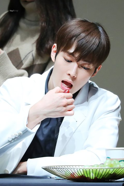 어떤 팬이 샤인머스켓 너무 맛있어보여서 앉자마자 샤인머스켓 쳐다보니까 안준대 ㅋㅋㅋ
