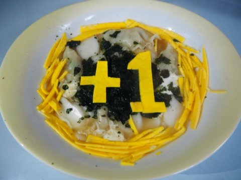 1. +1 떡국!!해가 바뀔때마다 해먹는 나이 한살 플러스 떡국입니다. 이제까지는 김으로 했는데 올해는 좀 특별하게 노른자 지단으로 했더니, 훨씬 쉽네요ㅋㅋㅋㅋ 흰자는 국에넣어줍니다. 떡국으로 나이를 먹는다면 난 이미 100살!!