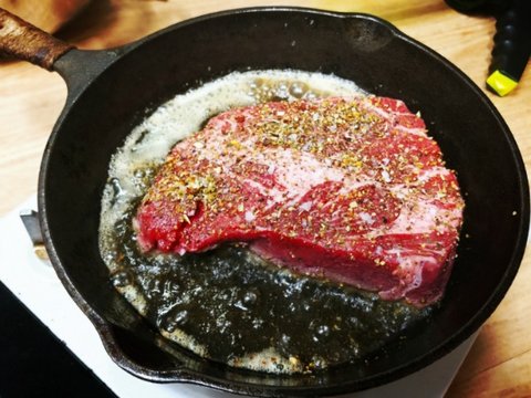 마트에 척아이롤은 많지만 이렇게 두꺼운건 보기 힘들었는데, 마침 팔길래 겟!! 시즈닝을 하고 무쇠팬을 달궈서 구우면 빨리식지도 않고 좋습니다. 단, 고기가 얇으면 오버쿡 될수있음;;; 이젠 플레이팅도 귀찮아서 대충 양파 썰어 뿌리고 그대로 먹었습니다ㅋㅋㅋ