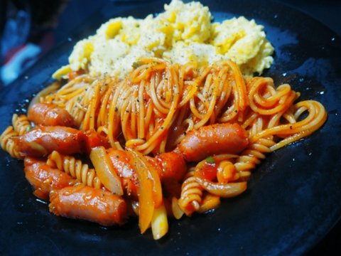 케찹과 고추장을 섞어 맵게만든소스에 에그스크럼블, 비엔나까지 넣은 불량한 맛의 파스타, 개인적으로 아주 좋아하는 파스타중 하나 입니다. 에그스크럼블에 버터와 생크림, 우류를 넣고 약불에 오래 익히니 정말 맛있습니다. 그동안 대충 계란후라이 실패한거 처럼 만들어 먹었는데;;;