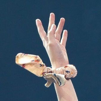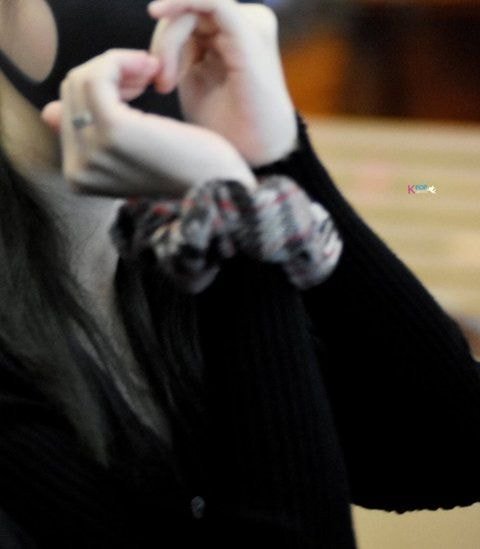 요즘 아이유 사진을 보면 손목에 곱창밴드를 착용하고 있는 모습을