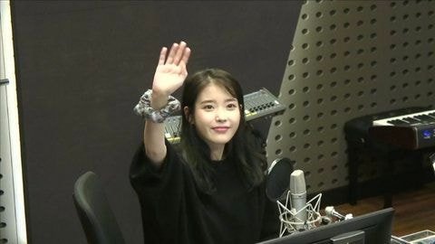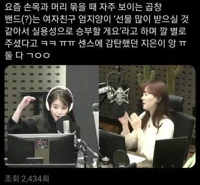 엄지가 아이유에게 곱창밴드 선물을 주면서