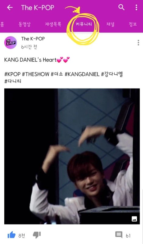 https://www.youtube.com/channel/UCoRXPcv8XK5fAplLbk9PTww 유튭커뮤니티 강다니엘 하트짤 올라왔어 러블리멈무야 (υ·•︠ܫ•︡ υ)