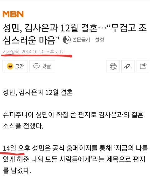 2014년 10월14일 슈주 성민 결혼 발표