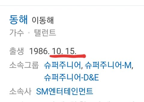 다음날이 슈주멤버 동해 생일임