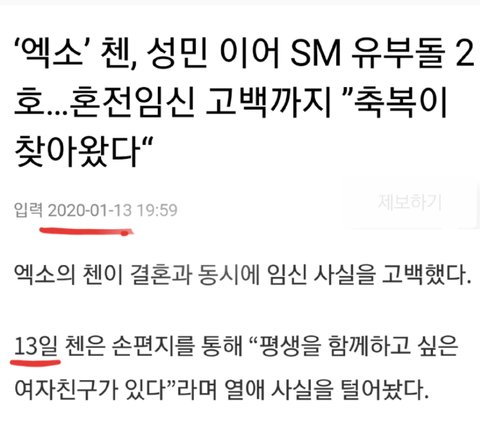 2020년 1월13일 엑소 첸 결혼 발표