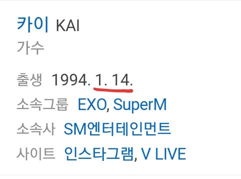 다음날이 엑소멤버 카이 생일임