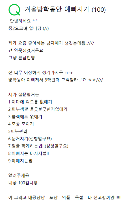 9년 전 중2때 올린 지식인ㅋㅋㅋ