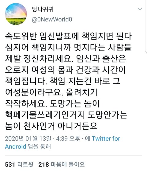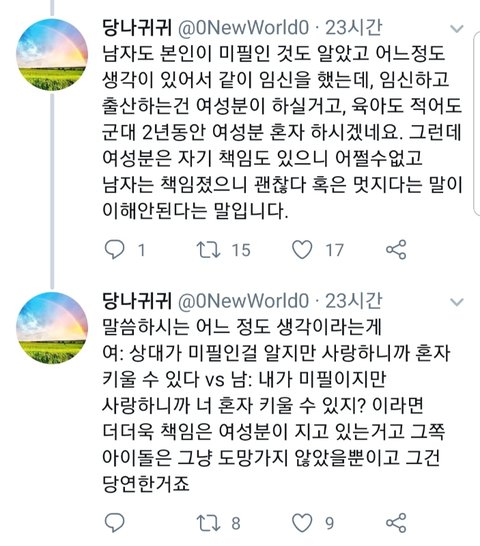 엑소엘은 감싸주고 책임진다는거에서 위해준다하지만 그래도 임신과 출산은 오로지 여자몫임 제대로 피임도 안하고 해서 생각없이 생긴건 좋은것도 아님