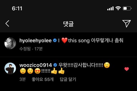 이효리 영상보고 지코가 후다닥 달려와서 댓글 달았음ㅋㅋ
