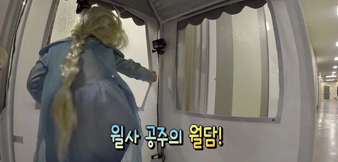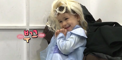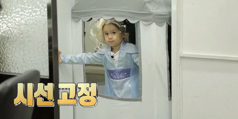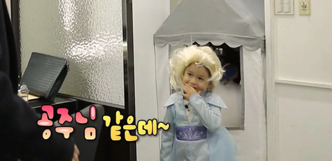 엘사 공주님 옷을 입고