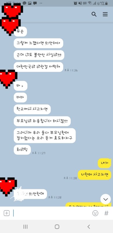 +)) 여러분 제가 사과도 안하고 뻔뻔하게 물고넘어진걸로 아시는거같은데ㅠㅠ 저도 사과했어요ㅠㅠ 늦은이유가 오랜만에 만난 친구들이 저를 보내주지 않아서 제가 박차고 나올 용기가 없어서 늦어버린거예요 그래서 남자친구한테 친구때문에 늦었다고 말하기엔 뒷감당이 무서워서 휴대폰 잃어버렸다고 말한거고 뒤늦게 찔려서 바로 실토했습니다 그 후에 계속 저도 사과했고 싹싹 빌었습니다