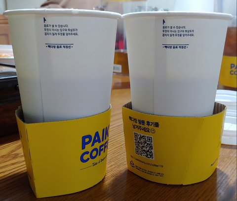 어느날 포장해와서 먹으려고 집에와서 뚜껑을 열어보니 거품제거된 뒤 터무니없이 커피 수위가 줄었더군요