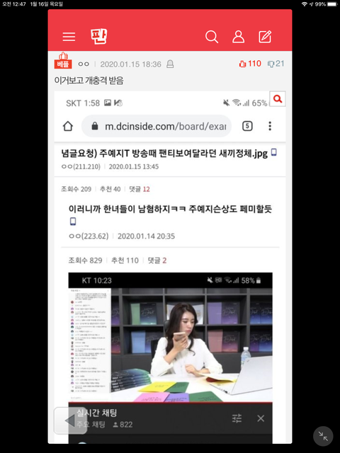 판에서 이렇게 시작하는 >DC갤< 글을 본적이 있었을거임. 짤이 길어 다 캡은 안했지만 대충 kris___65라는 사람이 주예지 생방중 “팬x보여줘”라는 댓글과 2000원을 보냈고 dc갤에선 페북 아이디로 쳐보니 여자였다고 함.