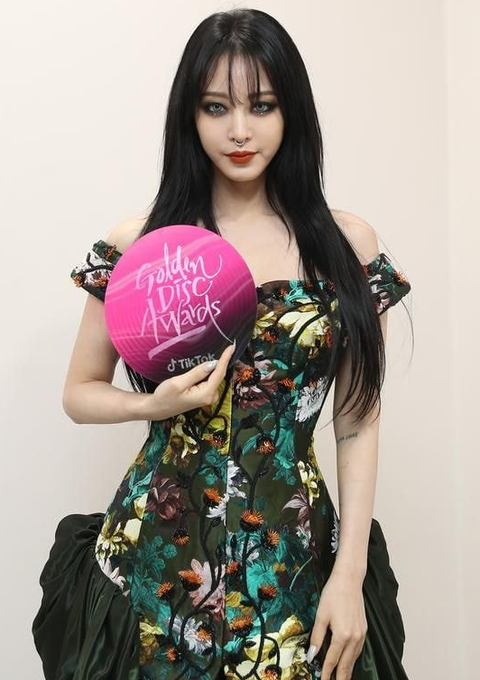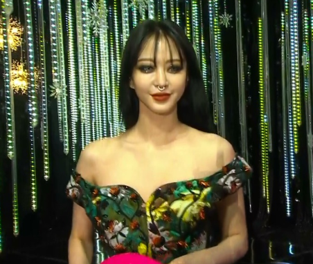 한예슬이 진한 스모키 메이크업과 코걸이로