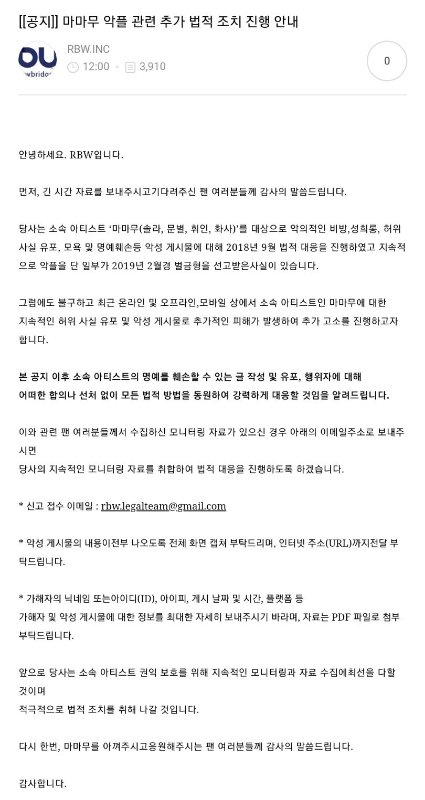 여기 무무들 있다면 이 양식에 맞게 이메일로 보내고 마마무 까들은 인생 망하기 싫으면 손가락 놀리지 말고