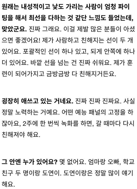 본인이 생각하는 바운더리 안에 도연이가 있다는 세정이의 인터뷰