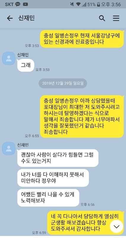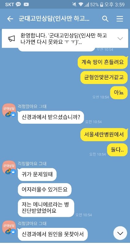 나는 군대 9월30일에 입대햇어 어지럼증이 3년전부터 있엇는데 그때부터 ct mri mra 다찍고 결과는 이상이없어서 군대를 오게 됬는데 이때부터 꼬엿어 나는 어지러워서 활동을 잘안해서 몰랏는데 군대와서 많이 움직이니까 와 도저히 안되겟구나 해서 수도병원 신청해서 이비인후과 신경과가서 ct mri다찍엇는데 이상이 없데 나는 진짜 괴로운데 여차여차해서 자대왓는데 그때 어지럼증이 이따 설명하고 생활중인데 도저히 안되겟는거야 내가 맨날 아파서 누워있고 솔직히 아픈건 죄가 아니잖아? 근데 여기는 눈치만 보이고 아픈데 죄인이 된거같고 진짜 너무괴로워서 아무도 안보는곳에서 엄마한테 전화해서 엉엉 울고 진짜 내말들어주는 사람없어서 동기한테 붙잡고 나진짜 아프다 진짜 내가 군생활100일정도됫는데 다낫고오면 재입대를 하고싶다 근데 그건 또 안되는거더라고 자대오면 근데 난 진짜 군대로는 스트레스 안받는데 군대힘들어서 그러냐고 5개월만 버티면 편해진다고 이따구로 밖에 답안해주고 그래서 난진짜 이러다 아파서 죽겟다 그래서 포대장님한테 진짜 너무 괴롭다고 아프다고 병원좀 보내주라고 해서 병가 겨우 받고 일주일 서울 세란병원가서 어지럼증 검사 입원하고 받았는데 이상이 없데 ㅠㅠ 난 진짜 어떡해야될지 모르겟어 맨날 진짜 포대장님 찾아가서 상담하고 상담사랑 상담하고 행보관님이랑 상담하고 울고 대대장이랑도 한번 상담해봣는데 3개월버텼으니까 제대할때까지 버티면 되지않겟냐 이런식으로 얘기하고 ㅠㅠ 나 너무 괴로워서 휴가나왓는데 맨날 밖에서 울고 밤에 울다가 엄마가 집에 안오니까 찾아와서 위로해줫는데 내가 계속 안듣고 울기만 하니까 엄마가 차에 치이려고 하고 너무괴로워 미칠거같아 진짜 나어떡해야될지 모르겟어 누가 나진지하게 답좀 해줘 ㅠㅠ 내전화번호도 알려줄게 제발 나좀 도와줘 죽을거같아 내힘으론 할수잇는게 아무것도 없어 ㅠㅠ 나도 노력중이야 포대장님한테 너무아파서 탈영한다는 식으로도 얘기하고 진짜 원인없다는거 듣고 하루종일 울엇어 난진짜 나아서 당당하게 군생활 하고싶엇는데 못할거같아 살려줘 진짜 진짜 미치기 직전이야 나좀도와줘 내가 할수잇는게 아무것도 없어 지금까지 휴가쓴것도 다병원진료 받고 맨날 포대장님한테 결과보고하고 나좀 진짜 도와줘