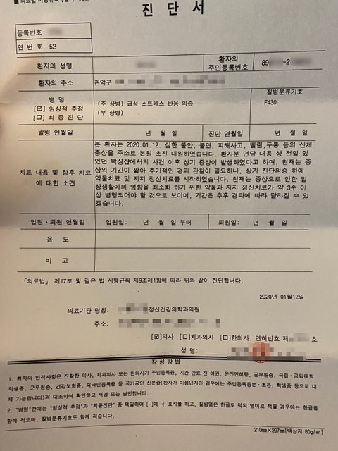 언제 어떻게 누군가 나의 동의 없이 저 현관문을 열고 들어오지는 않을까... 공포와 불안감 그리고 성적수치심.. 온몸 떨림 증상 극심해 밤을 샜고 결국 다음날 일요일 진료가 가능하며 여의사가 있는 정신과를 찾아 상담 후 약 일주일치 약을 처방 받아옴.