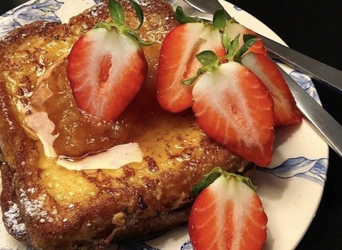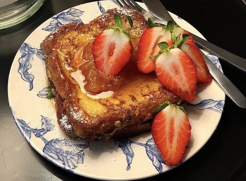 집에서 만든 복숭아잼을 올린 프렌치토스트