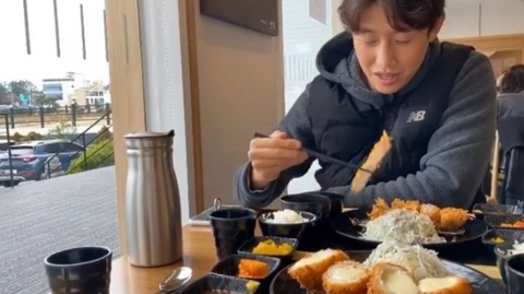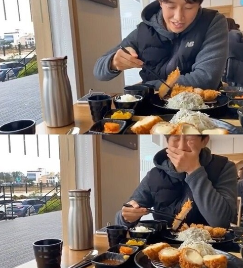 돈가스를 먹은 뒤 입틀막 하며서 감격(?)하는 강기영ㅋㅋㅋㅋ