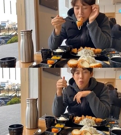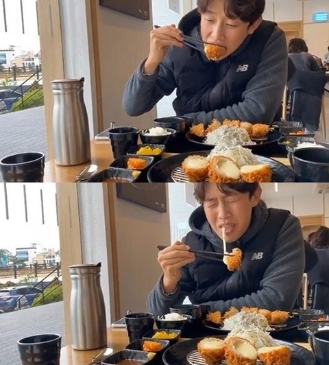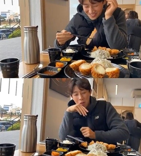 이제 돈가스를 먹는 강기영의 모습