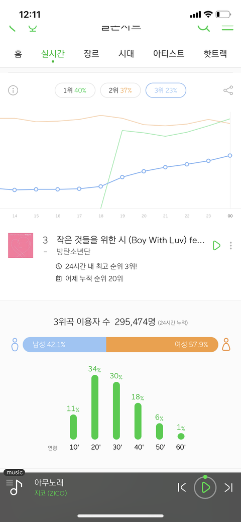 2019년 4월 중순에 나온 작은시가 3위라니...그것도 남자 40%가 넘어!!