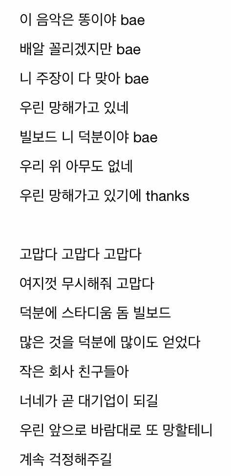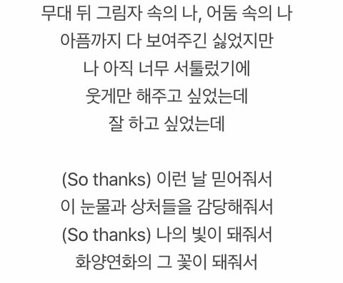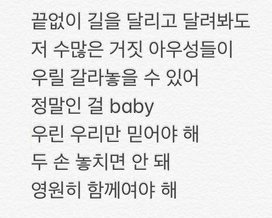 악플러들 또 배아프겠지??? 아무튼 가사 갭차이도 대박이고 팬들한테 쓰는 가사들이 너무 예쁨 ㅇㅇ