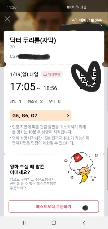 이렇게 됐는데 상영관 들어갈때 그냥 보여주고 들어가면 되는거야? 아님 거기서 또 저걸 뽑아야되는거야?