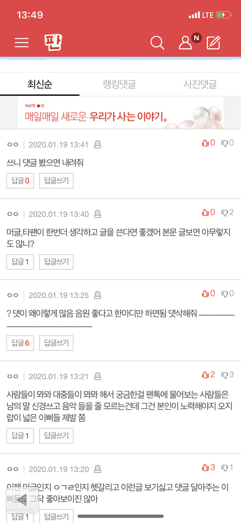 인증 댓 저기 댓 하나 두고 다 댓삭좀 요 며칠 머글이라는 제목 달고 저런 글 계속 올라오는데 댓하나 달리면 그 위로 그냥 반응 하지마 찐 머글인지 개그론지 어떻게 구분해