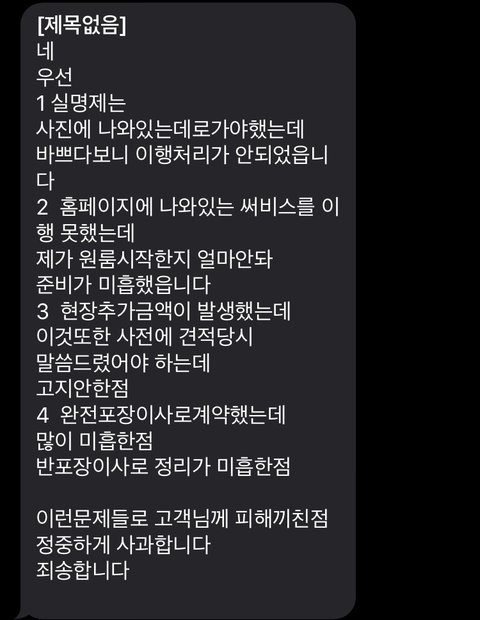 해당업체는 이글이 조회수가 오르고 기사화되서 그런지 모르겠지만 연락이 계속 와서 협상을 시도하셨고 정당한 사과와 환불을 받기로 했습니다.일단 짐을 옮겨주신건 맞으니 용달비용정도로 하고 나머지 금액과 냉장고 비용을 환불받았습니다.댓글에 해당업체 직원인것 같은 분들 댓글 보면 사실 글도 지우고 싶지 않지만 이미 기사화도 되었고 환불도 전액은 아니더라어도 피해보상액을 받았기 때문에 본문글은 지워드리고 사과글을 게시하여 수정하기로 하였습니다.해당 업체가 이번일을 계기로 고객들을 대하는 태도를 비롯 기본적인 이사 매뉴얼이 제대로 지켜지는지 등을 제대로 점검하길 바랍니다. 아니면 또 저와같은 일이 발생할테니까요.
