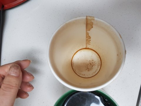 그 후 9시경 어머니가 아메리카노의 뚜겅을 열어 드셨고 좀 드시다 보니 종이컵에 이상한 자국이 있다며 유리잔에 아메리카노를 따랐더니