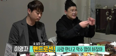 사람 만나고 악수 많이 하니까 핸드로션을 선물함