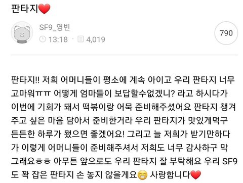 그래서 멤버들 어머니들께서 판타지들한테 역조공 해주심