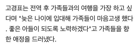 전역 후, 가장 하고 싶은 일로 가족과의 여행을 꼽았음