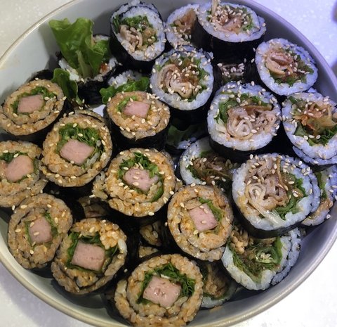 일반 김밥 매운스팸 김밥 대패삼겹살 김밥 연어장김초밥 엄마가 싸다준 김밥+쫄볶이