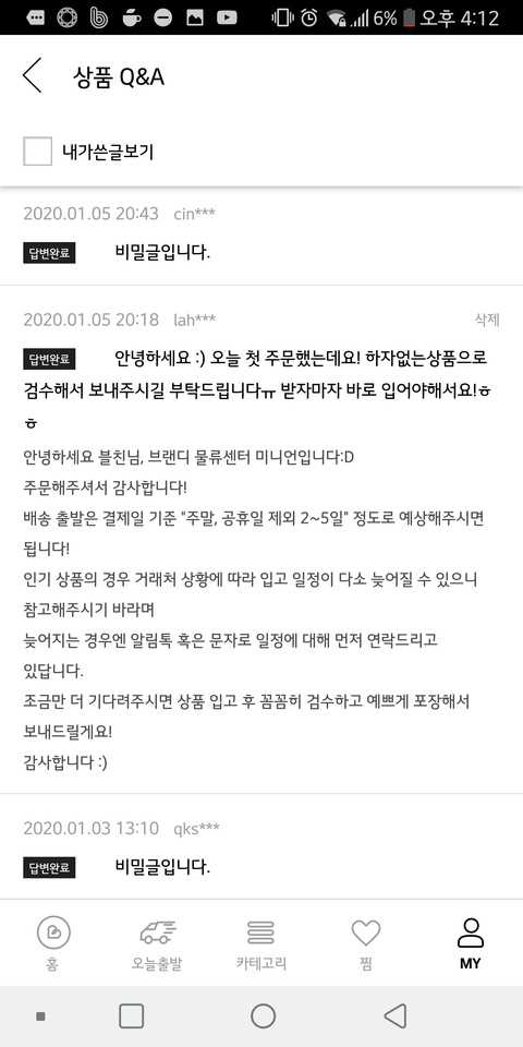 q&a 문의글에 꼼꼼한 검수 부탁한다고 까지 글 작성. 난 예민한 편은 아니지만 후기에 종종보여 걱정이 됨.