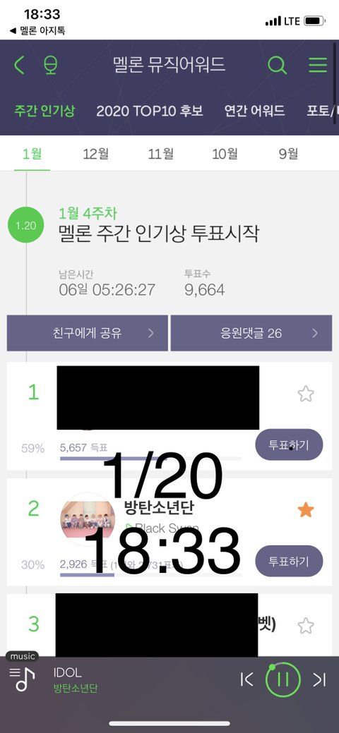 주간 인기상은 매일 3표씩 고고 현재 2위! 멜롱 이용권 없어도 하루 한표씩 가능