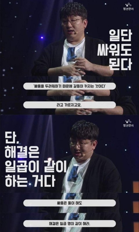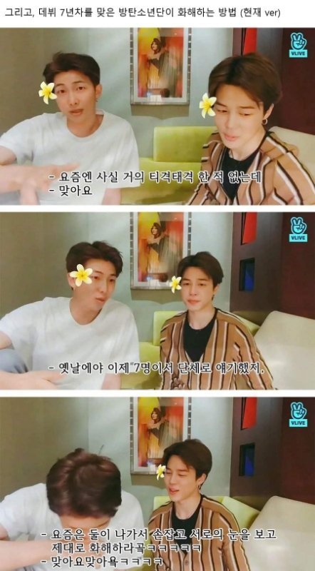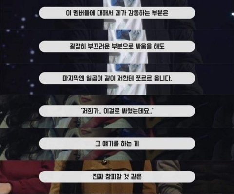 근데 난 진짜 대단하다고 생각하는 게 보통 대중을 생각해서 싸우더라도 친한 척하거나 이러는 경우도 있을 텐데 싸우고 모여앉아서 싸운 부분에 대한 서로 생각을 들어보고 서로 이해하고 사과하고 해결하는 게 너무 멋있다고 생각함
