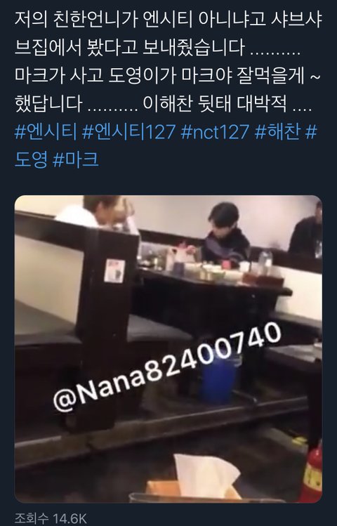 마크 해찬 도영이 샤브샤브 먹었다는 목격담