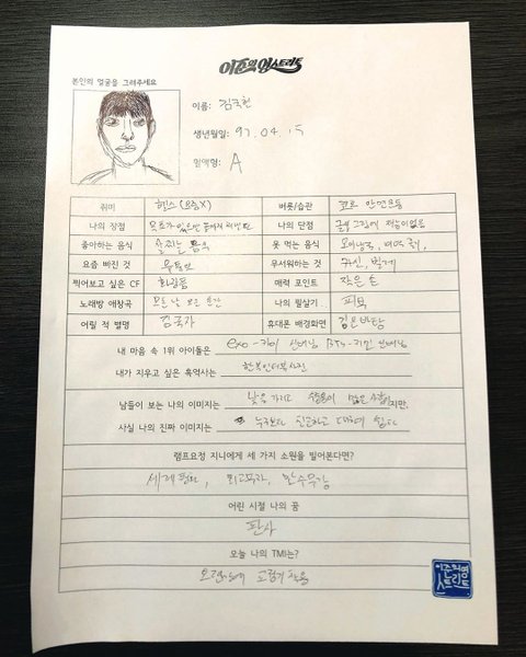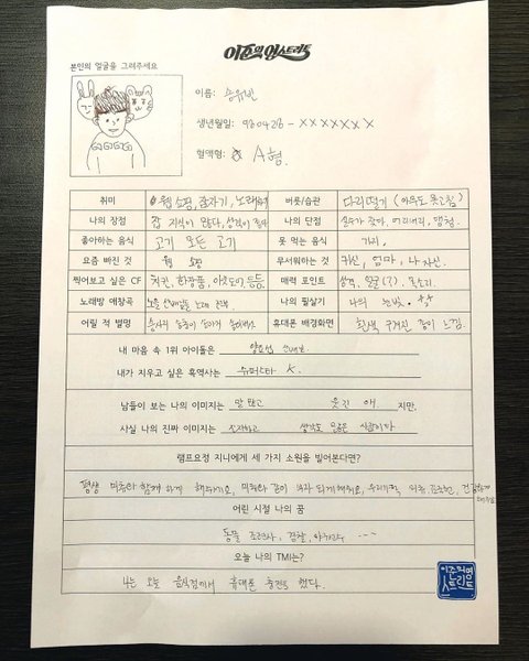 그러고 나서 방송 전 뵤뷰가 미리 작성한 자소서를 토대로