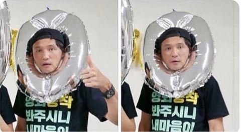풍선 들기 귀찮아 머리에 쓴 황정민처럼