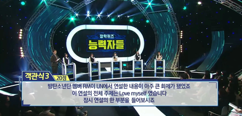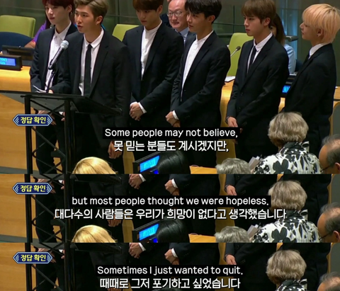 그리고 다음문제는 방탄소년단의 UN 연설을 언급했는데