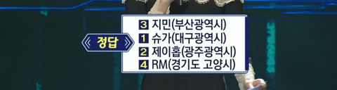 그리고 방탄소년단멤버들의 고향을 인구가 많은 순서대로 나열하기