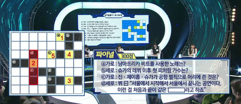 저기에 적힌 숫자를 연결해서 말이 나오는데 그 말을 맞춰야 함