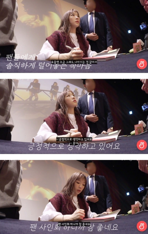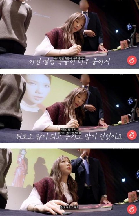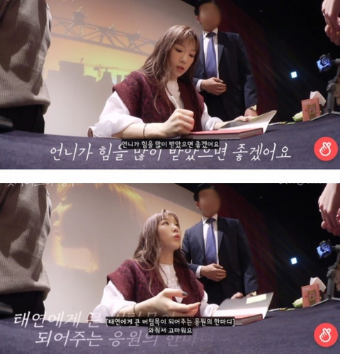 태연 "저도 그래요. 팬들 덕분에 용기 얻고, 똑같아요"